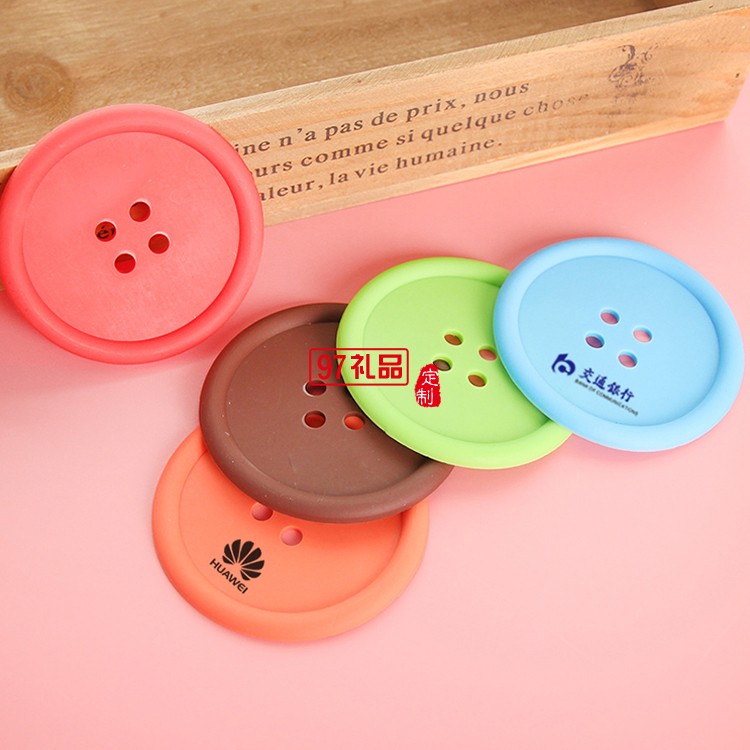 創(chuàng)意家居生活用品 圓形硅膠杯墊 可愛(ài)紐扣杯墊 隔熱墊