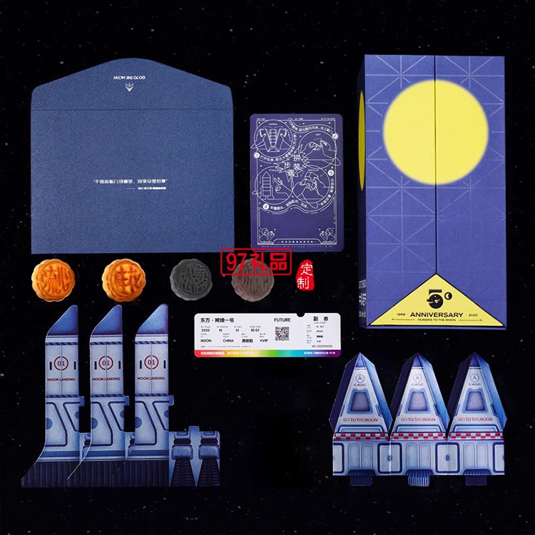 嫦娥一號中秋節(jié)月餅禮盒裝流心奶黃月餅高檔伴手禮品送禮團購定制