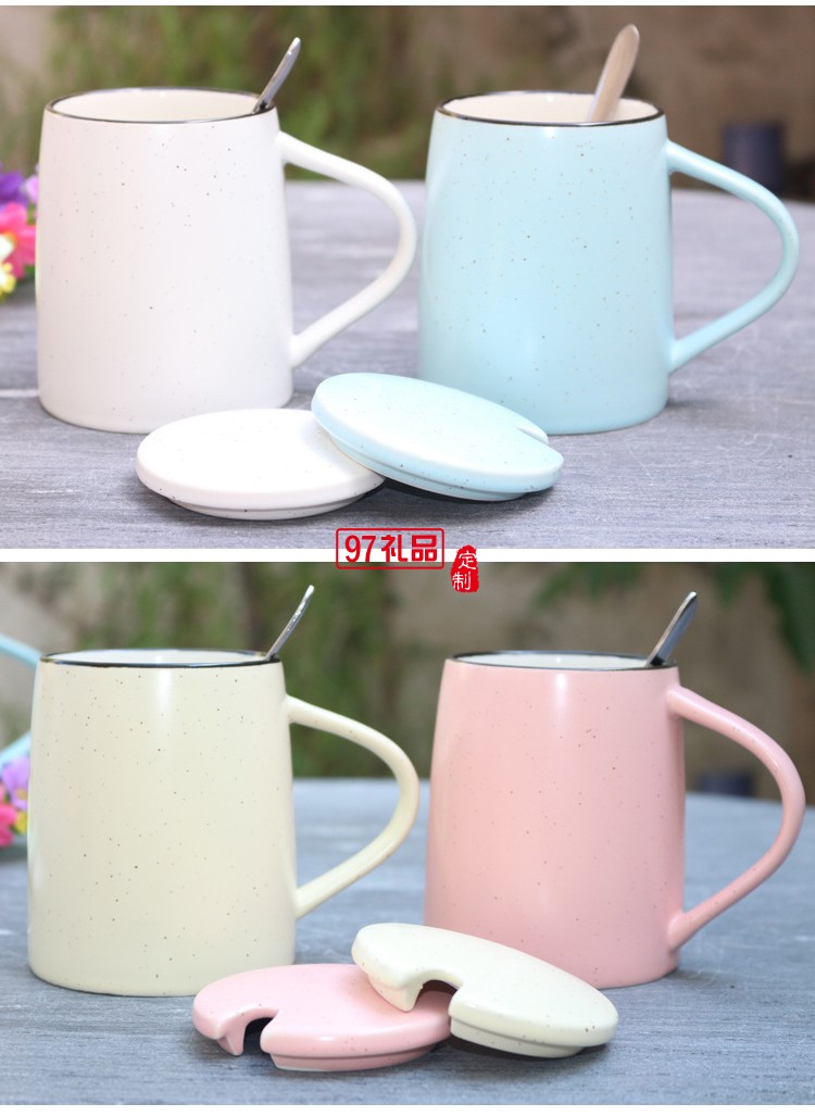 創(chuàng)意色釉陶瓷杯 帶勺子帶蓋子馬克杯 大容量早餐牛奶杯可印logo
