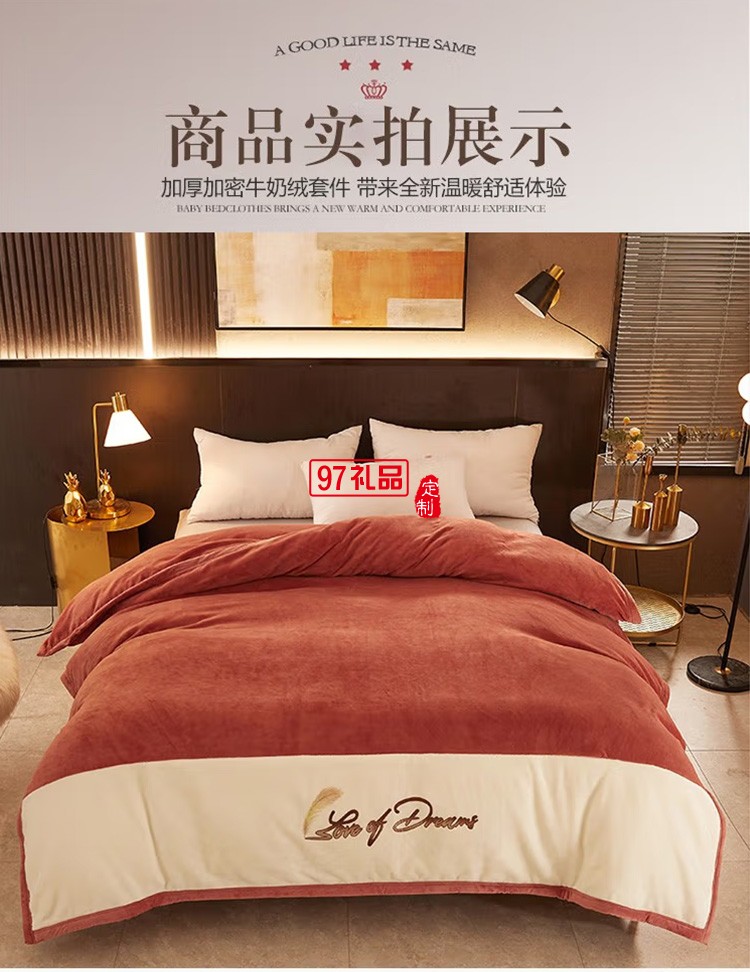 啄木鳥家紡超級(jí)牛奶絨四件套ZMN-NNR-01定制公司廣告禮品