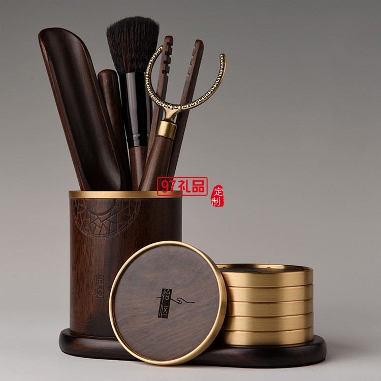 茶道六君子實木黑檀套裝功夫茶具配件茶夾筆筒茶杯墊