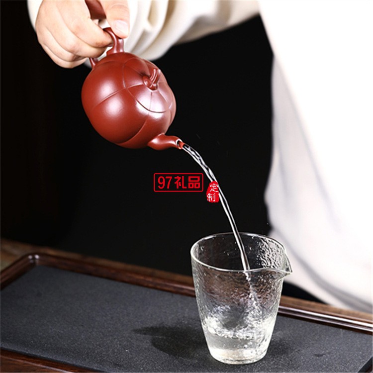 宜興紫砂壺 純手工原礦大紅袍南瓜壺 批發(fā)定制茶壺茶具