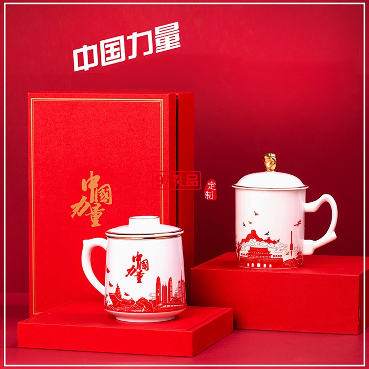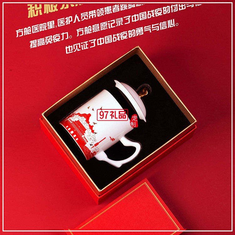 新款文創(chuàng)禮品陶瓷杯過濾套組志愿者抗疫紀(jì)念茶杯防疫中國(guó)力量杯子
