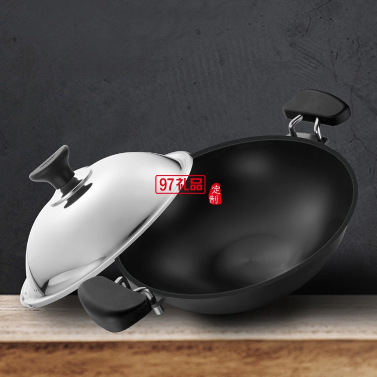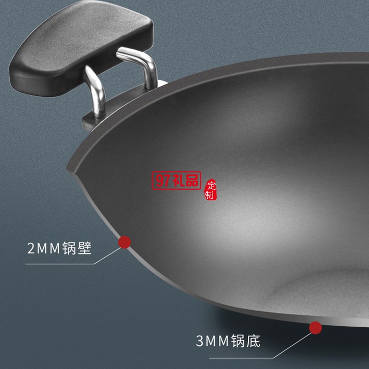 歐美達鑄造炒鍋無涂層物理不粘炒菜鍋OC7833-B定制公司廣告禮品
