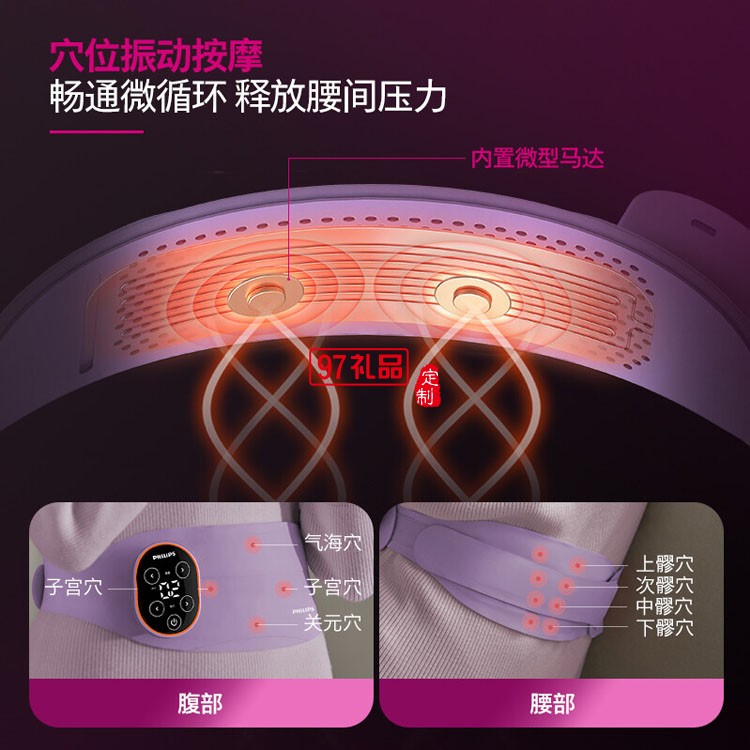 飛利浦腰部按摩器暖宮帶無線一體化 振動(dòng)熱敷 3202B定制公司廣告禮品