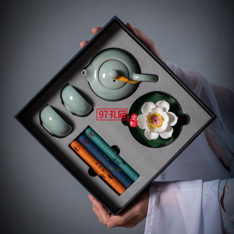 復(fù)古商務(wù)蓮花茶具商務(wù)組合周年慶客戶(hù)回饋員工福利禮品 可定制logo
