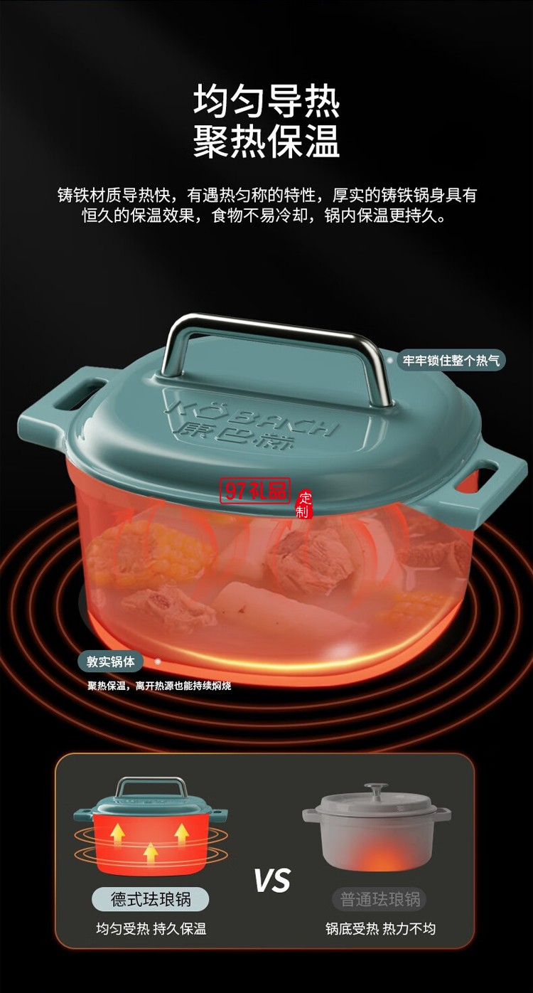 ◎鑄鐵工藝能將熱量更好的傳遞到鍋身和食材,受熱均勻,節(jié)約能源,同時厚實的鍋身具有更好持久保溫效果。