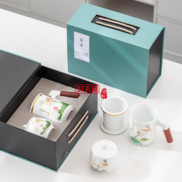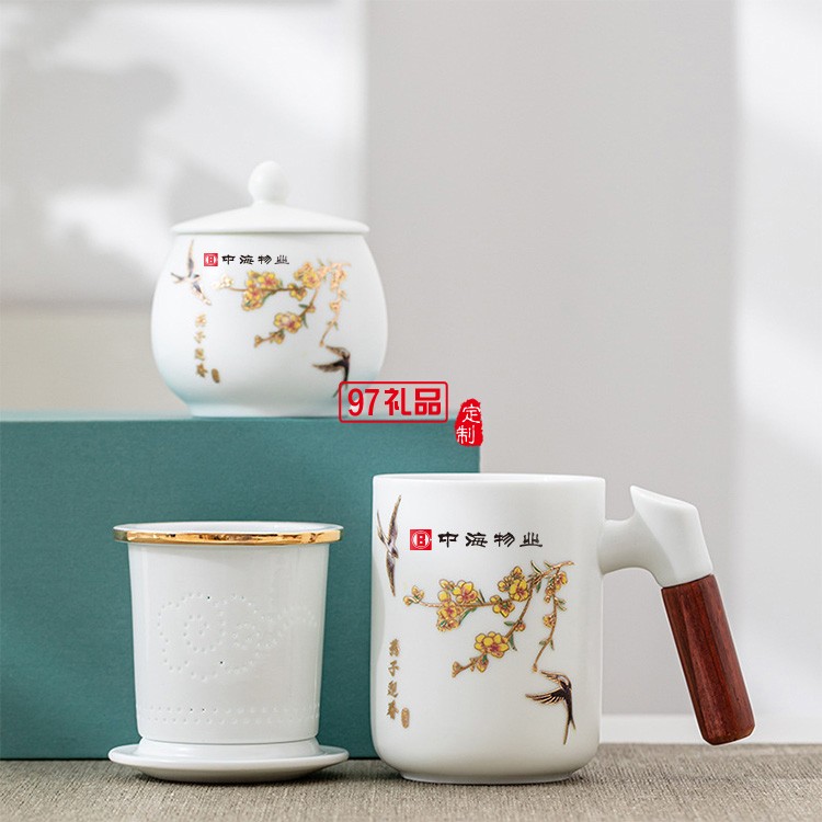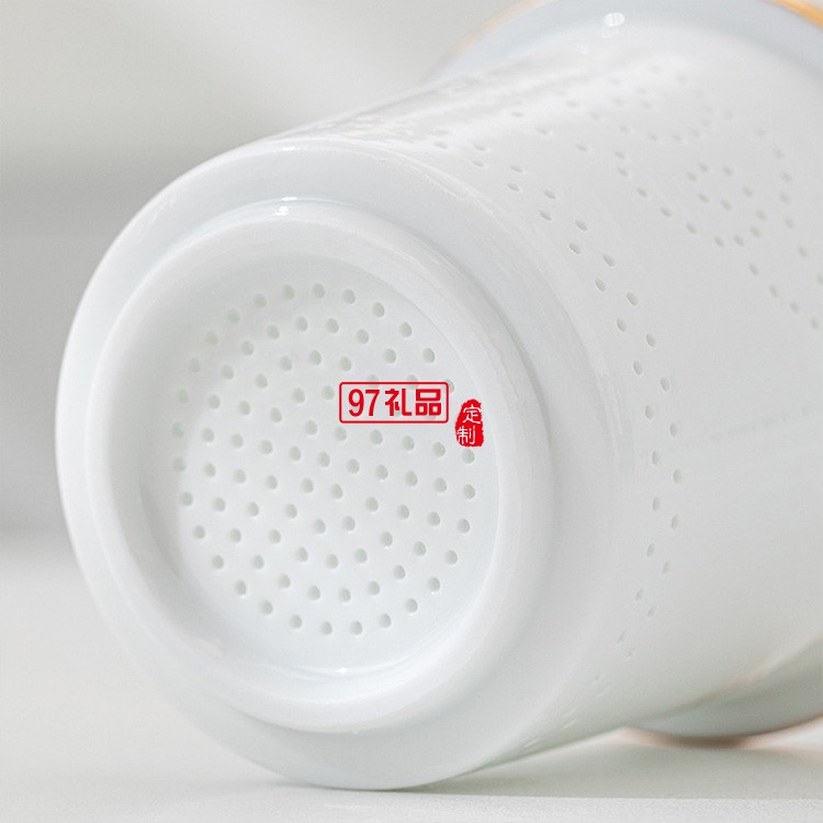 中海物業(yè)定制 羊脂玉陶瓷杯套裝辦公茶水過(guò)濾杯 可定制logo