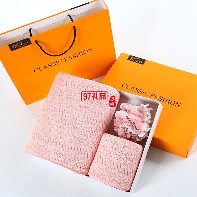 珊瑚絨毛巾禮盒套裝伴手禮送員工家用禮品三件套浴巾