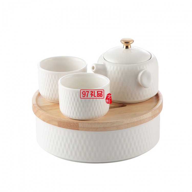 配    置 :茶壺*1   茶盤*1  茶杯*2             材    質(zhì) :高溫陶瓷+浮雕+描金+橡木