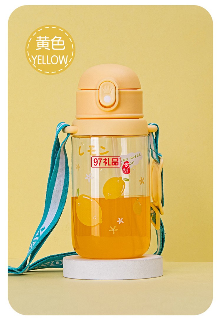 兒童吸管杯背帶提繩便攜水壺彈蓋水杯
