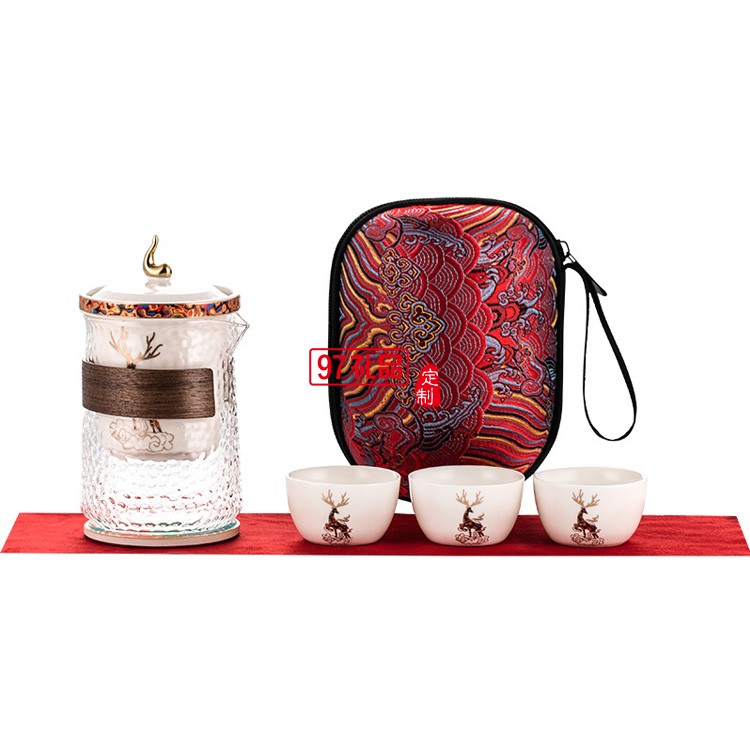 旅行茶具一壺四杯套裝商務(wù)logo禮品陶瓷茶壺戶外便攜干泡茶藝