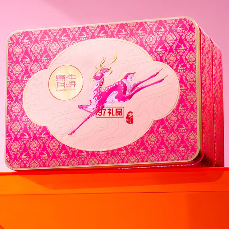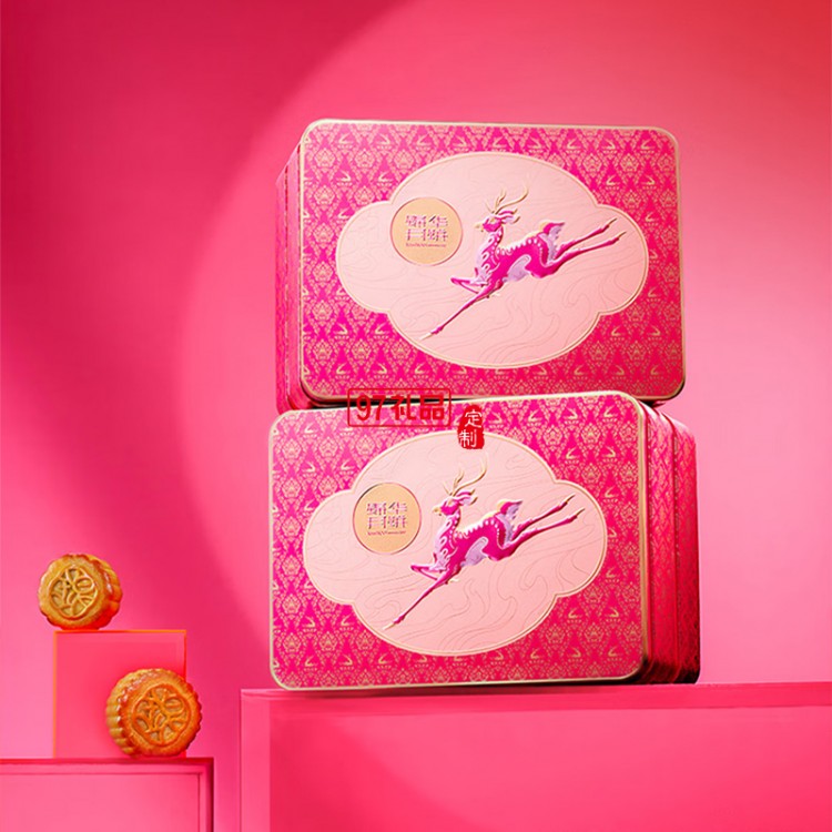 錦華福鹿詠月月餅禮盒1010g高檔雙層鐵盒蛋黃蓮蓉月餅中秋禮品