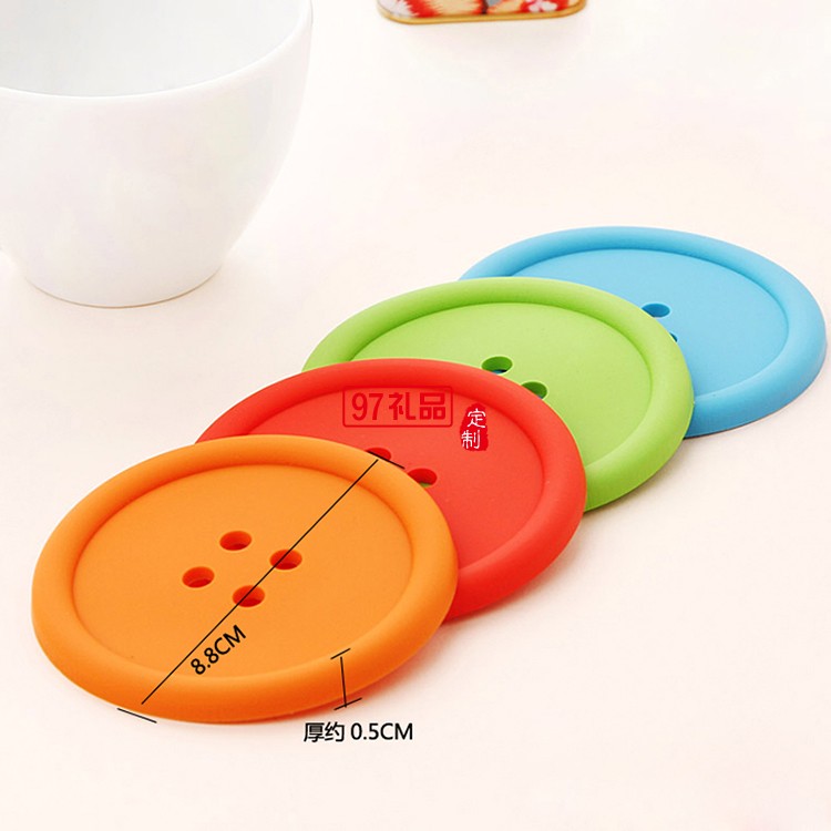 創(chuàng)意家居生活用品 圓形硅膠杯墊 可愛(ài)紐扣杯墊 隔熱墊
