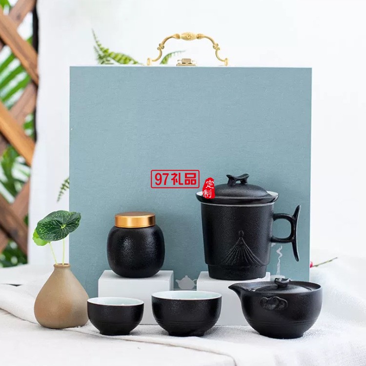 陶瓷茶具粗陶茶杯快客茶具套裝 茶葉罐商務(wù)送禮 可定制logo