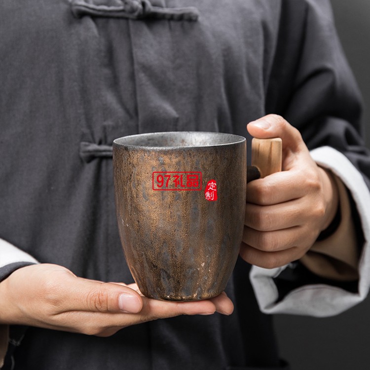 咖啡杯復(fù)古陶瓷茶杯創(chuàng)意木柄泡茶水杯個(gè)性家用奶茶杯