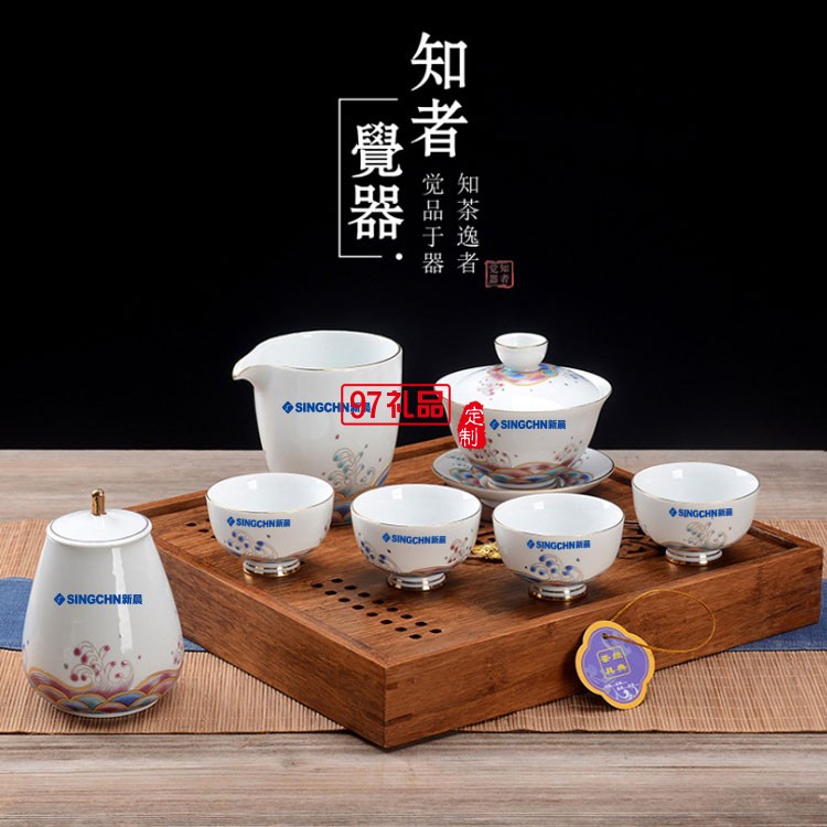 新晨定制新款玉瓷茶具套裝 商務(wù)禮品茶具套裝 可定制logo