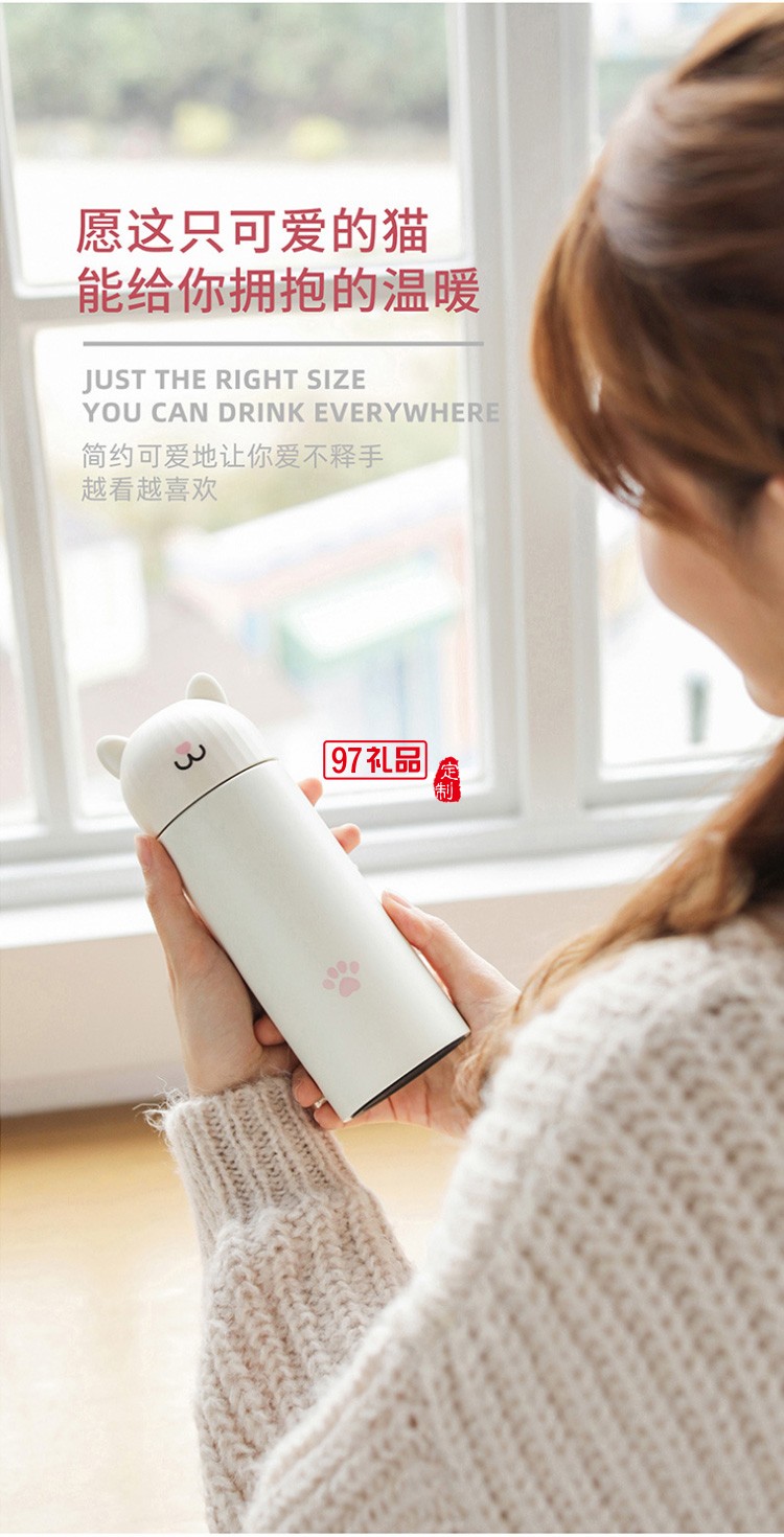 華夏銀行定制時尚喵喵保溫杯測溫數(shù)顯304不銹鋼保溫杯禮品杯子定制