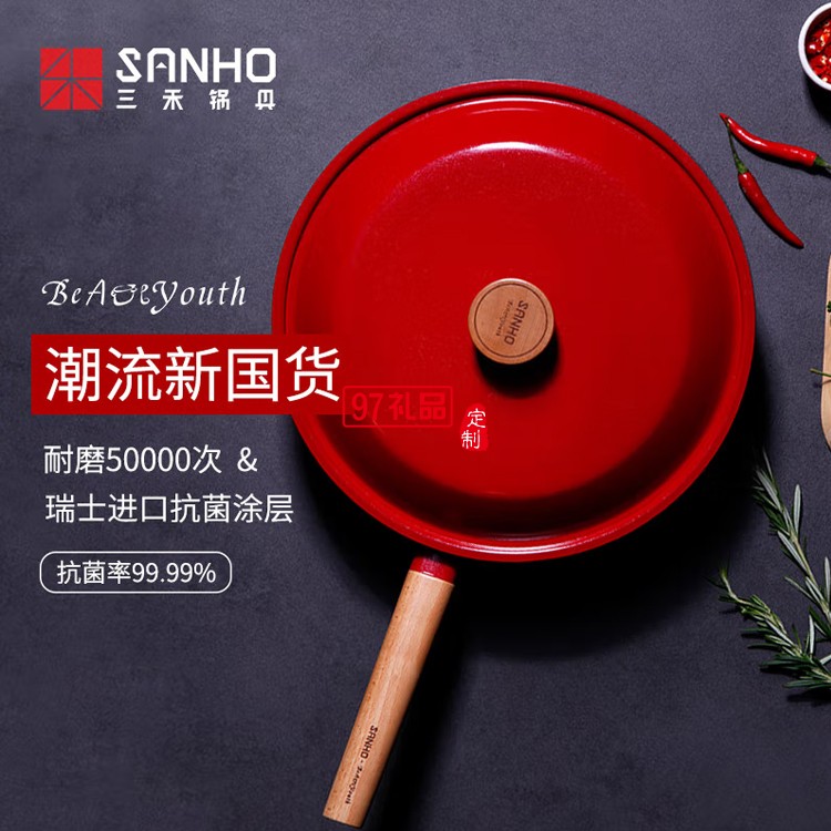 三禾小清新不粘鍋炒鍋不粘炒鍋LC30E1定制公司廣告禮品