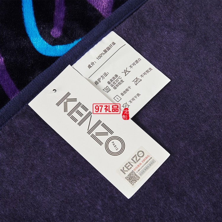 KENZO經典法蘭絨炫彩虎頭毯(藍)