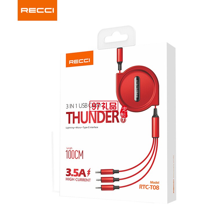 Recci雷霆RTC-T08伸縮一拖三充電線