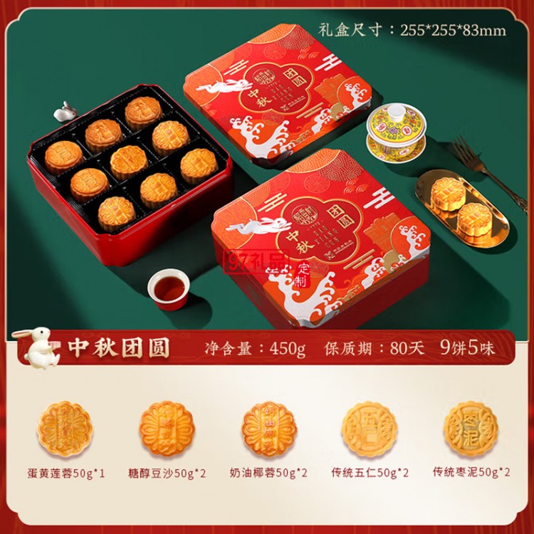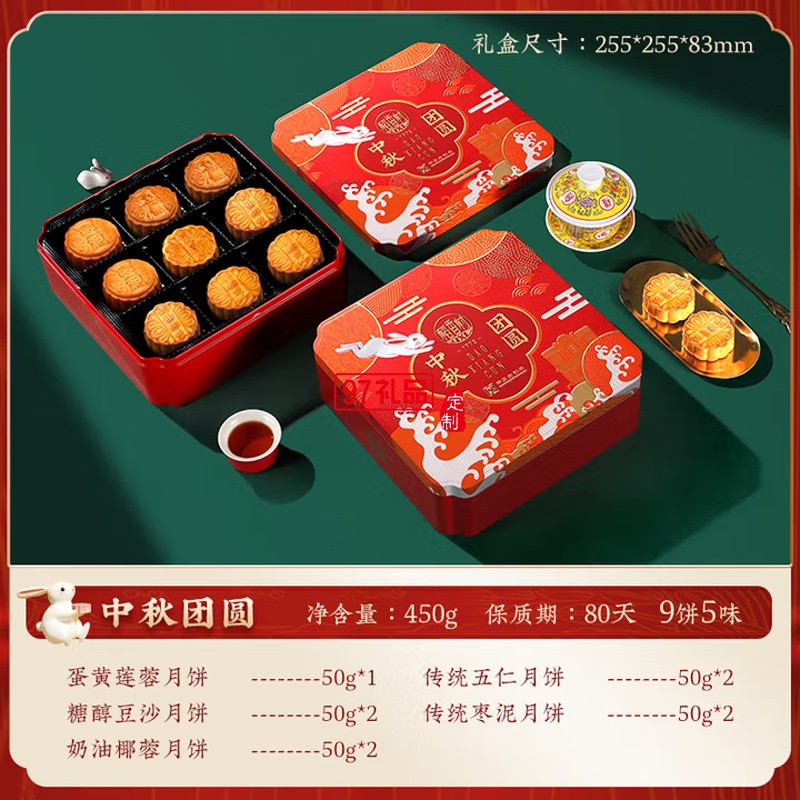 中秋節(jié)商務(wù)送禮團(tuán)購福利 稻香村中秋團(tuán)圓450g【鐵盒9餅5味】