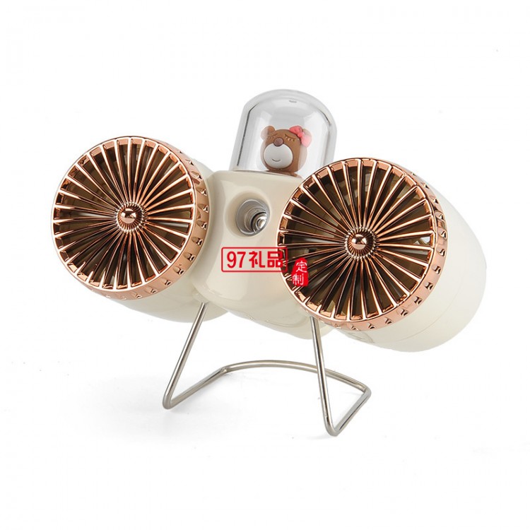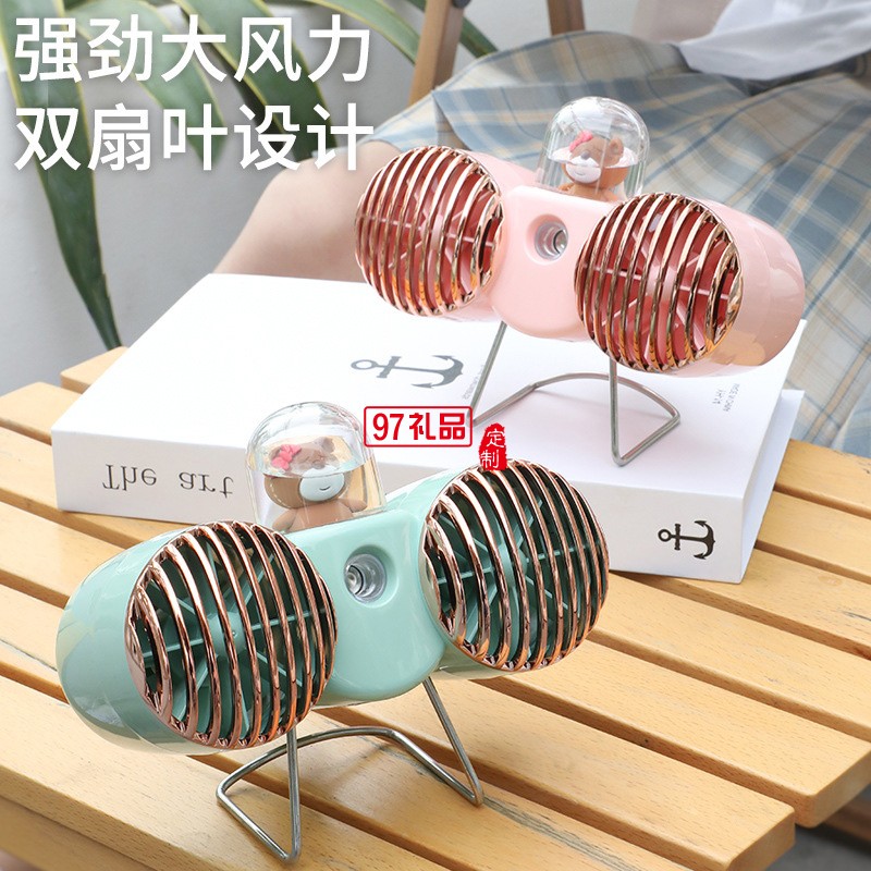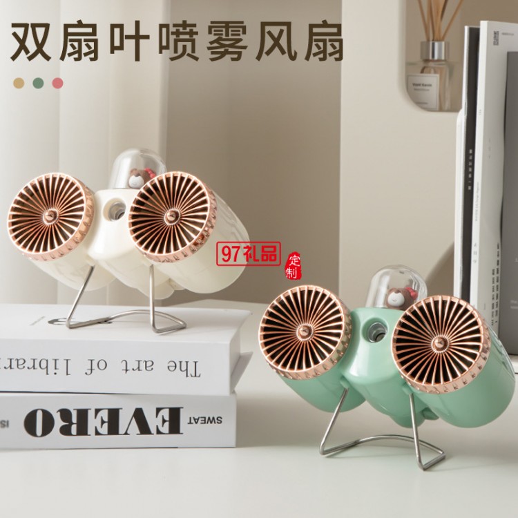 新款復古雙扇葉噴霧保濕小風扇USB充電居家辦公桌面噴霧2合1風扇