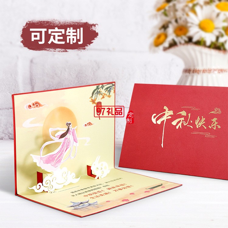 高檔燙金激光立體中秋賀卡企業(yè)定制員工3D中秋節(jié)禮品祝福卡片