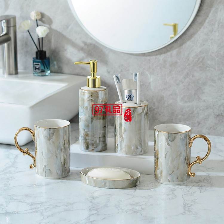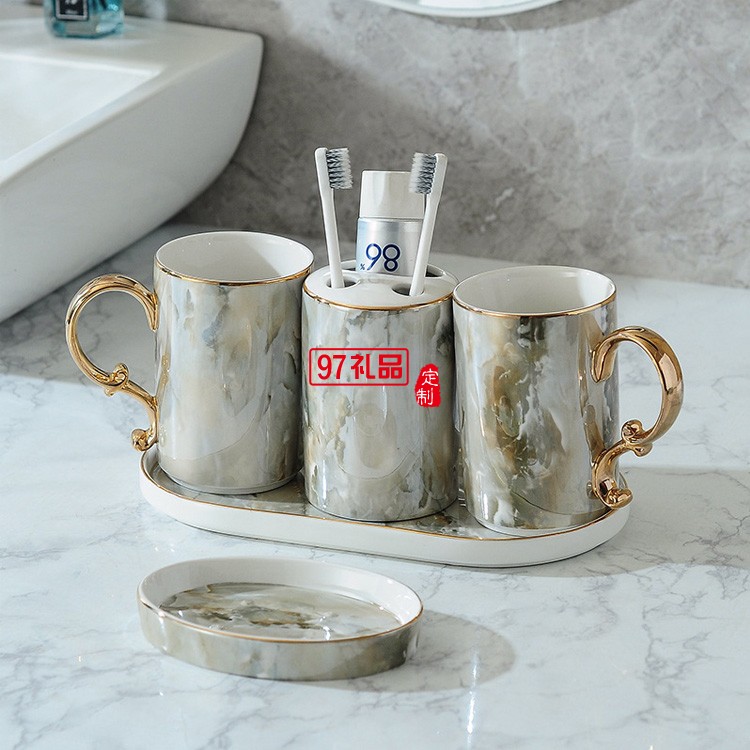 北歐浴室洗漱用品衛(wèi)浴五件套裝衛(wèi)生間刷牙漱口杯牙具陶瓷托盤(pán)套件
