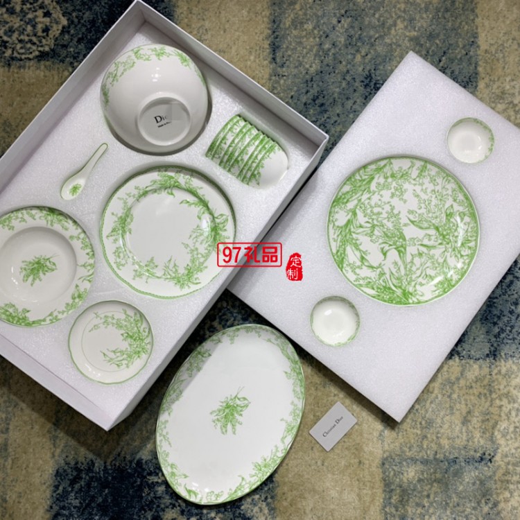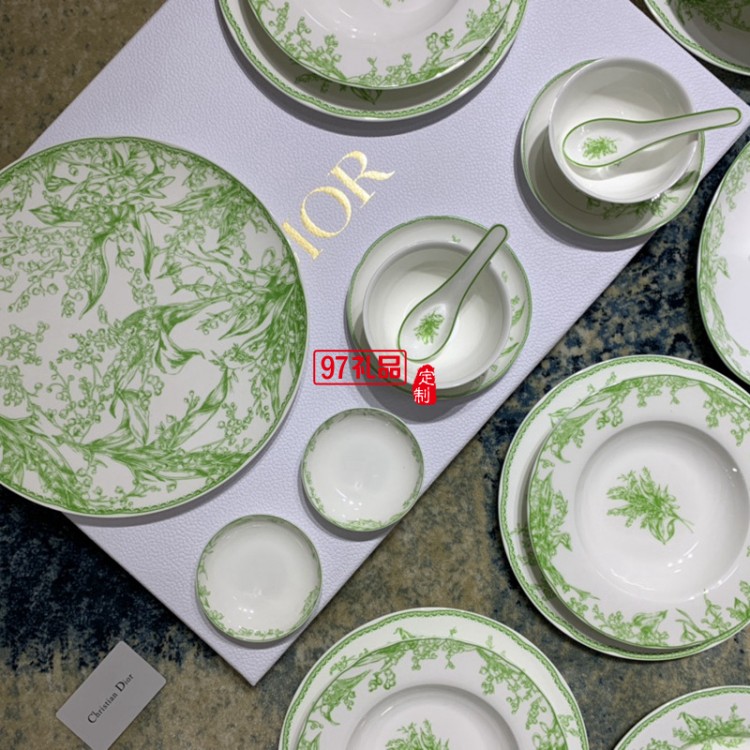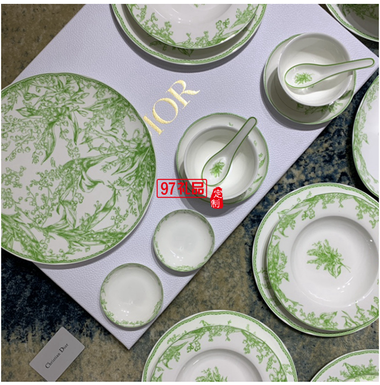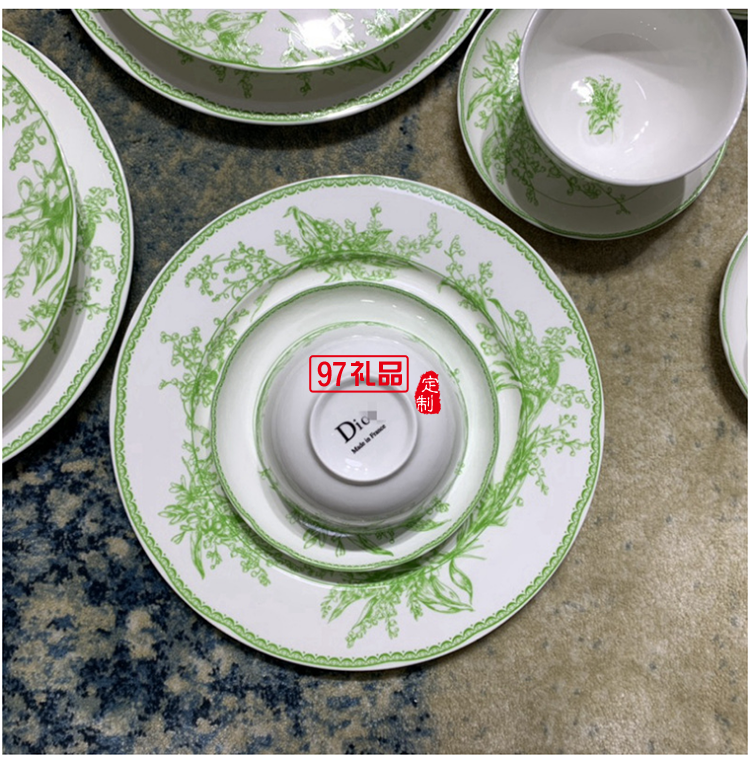 Do鈴蘭系列41頭餐具套裝禮盒DIO MAISON高級(jí)骨瓷綠色喬遷結(jié)婚