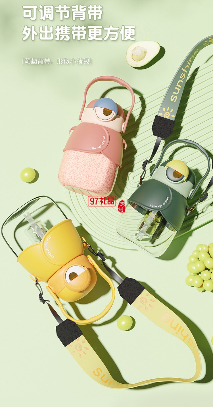 塑料杯卡通大容量水杯大眼萌果茶水壺吸管水杯禮品杯子定制