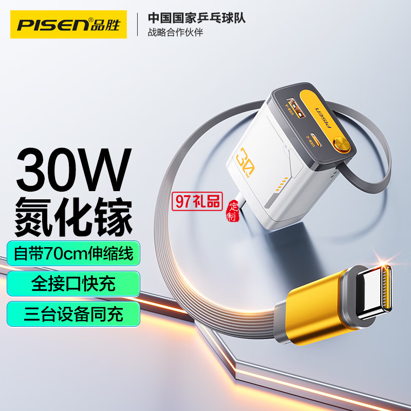 產(chǎn)品名稱:品勝-30W氮化鎵伸縮自帶線充電器(TP-C82)