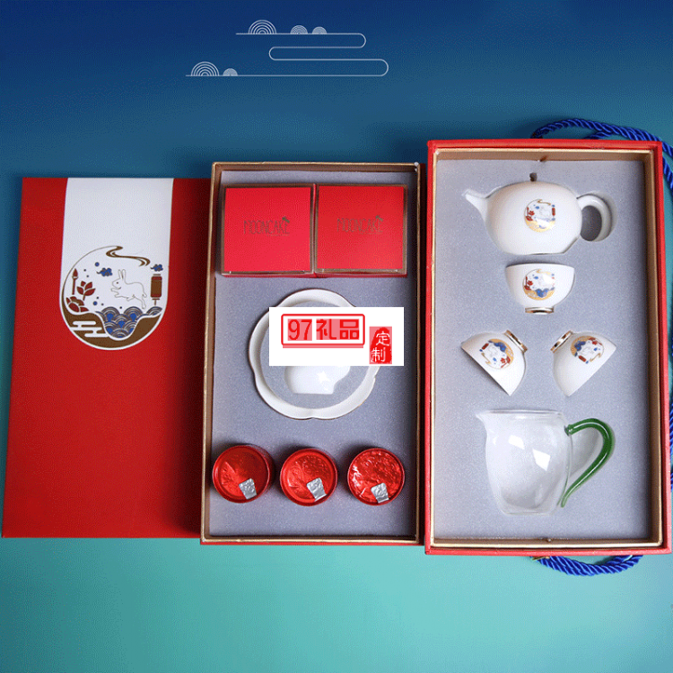 中秋禮品企業(yè)定制logo茶具月餅茶葉伴手禮