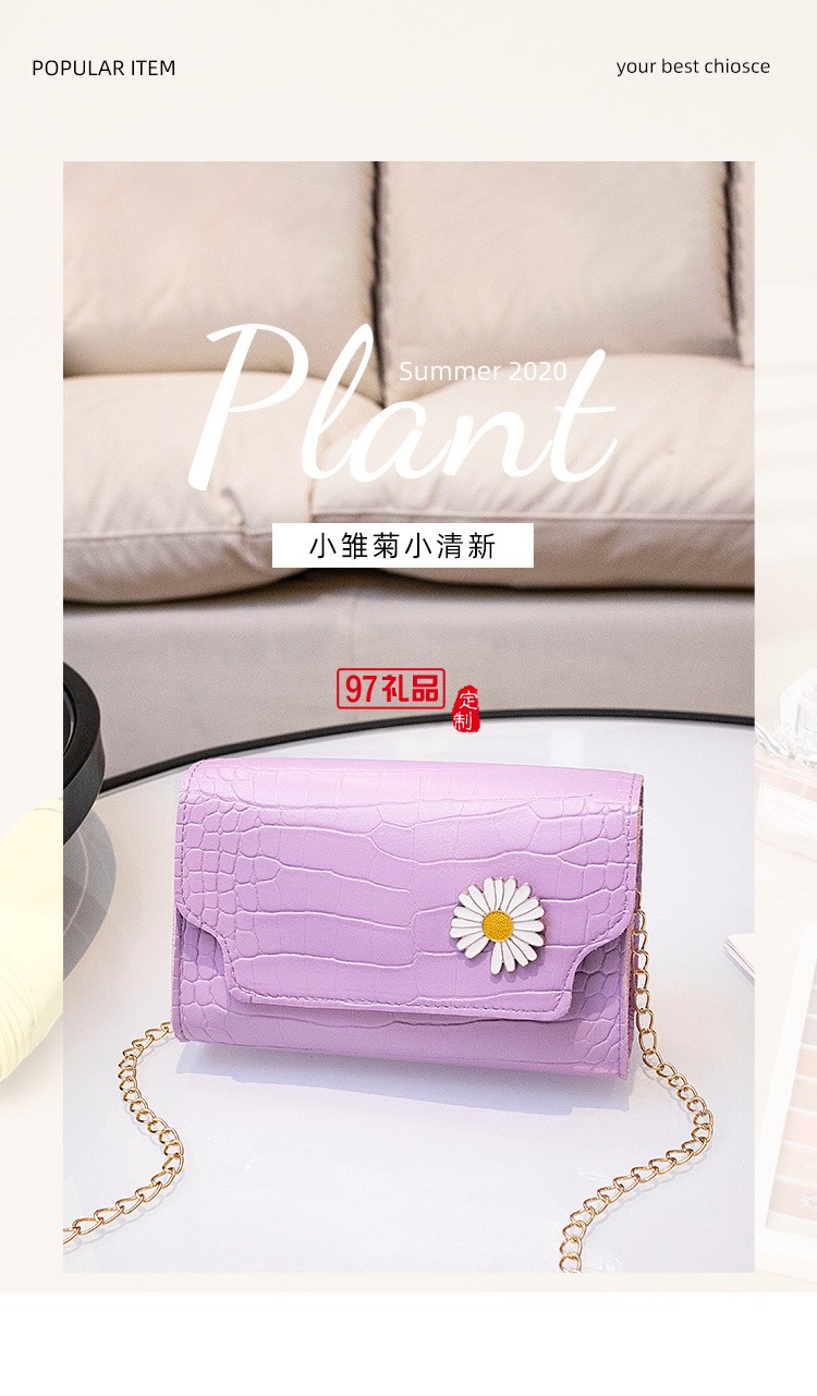 新款小菊掛飾鏈條鱷魚(yú)紋小方包時(shí)尚休閑手機(jī)包現(xiàn)貨