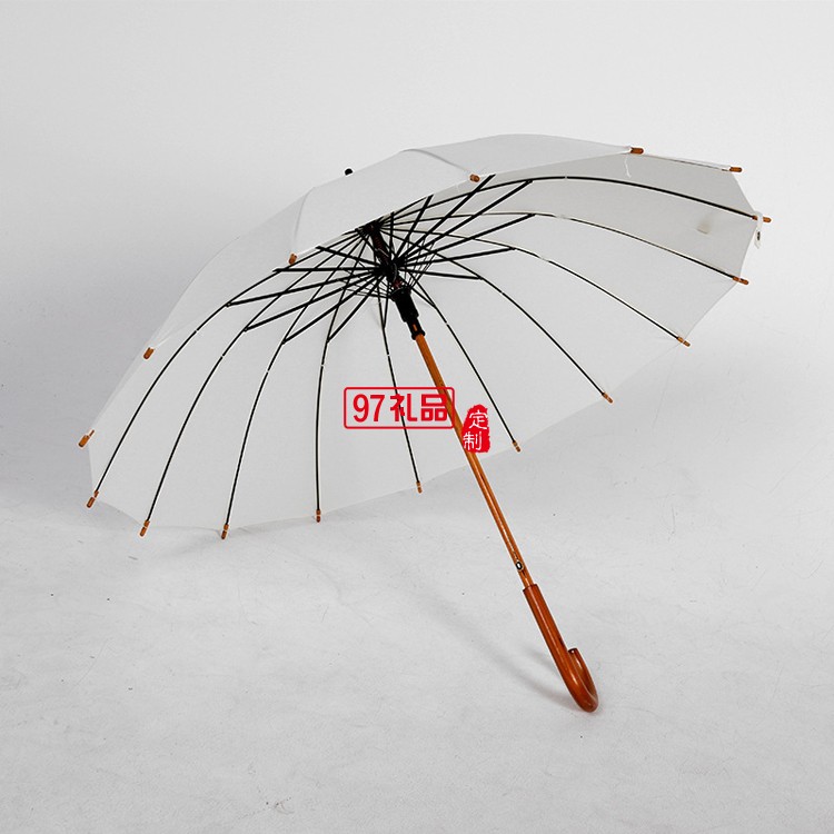 復古雨傘16骨長柄木桿純色日系簡約直桿傘