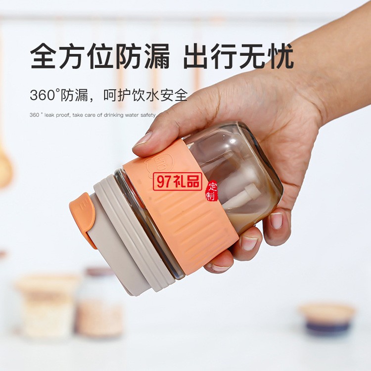 咖啡杯杯子玻璃杯帶蓋吸管杯隨行杯活動(dòng)小禮品定制