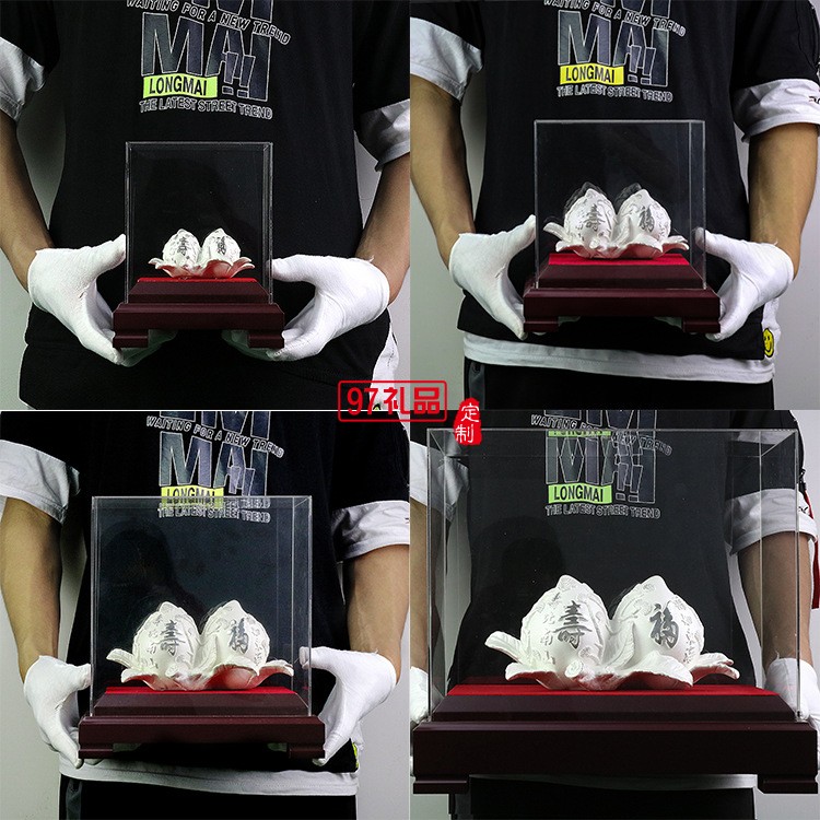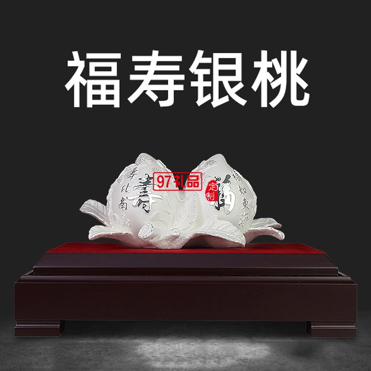 純銀送長輩父母福壽雙全大壽生日禮品高檔壽桃擺件