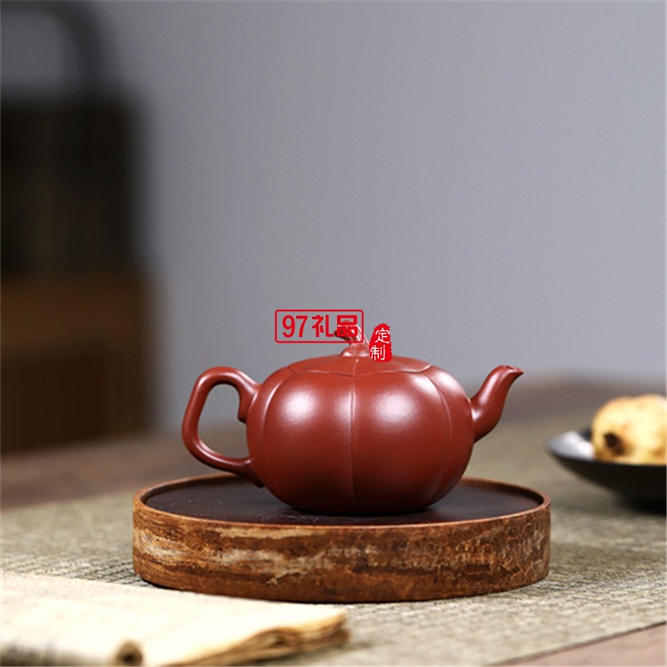 宜興紫砂壺 純手工原礦大紅袍南瓜壺 批發(fā)定制茶壺茶具