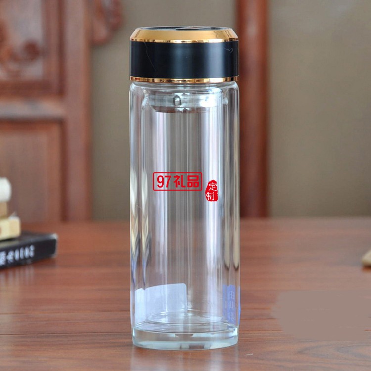 玻璃水杯雙層茶杯子定制廣告杯印字LOGO商務(wù)禮品水晶杯