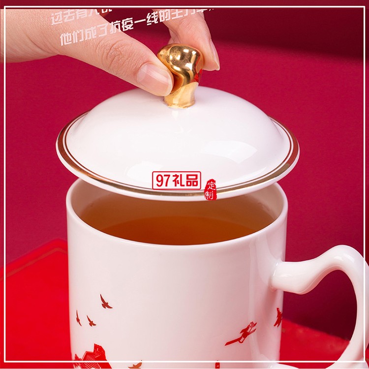 新款文創(chuàng)禮品陶瓷杯過濾套組志愿者抗疫紀(jì)念茶杯防疫中國(guó)力量杯子