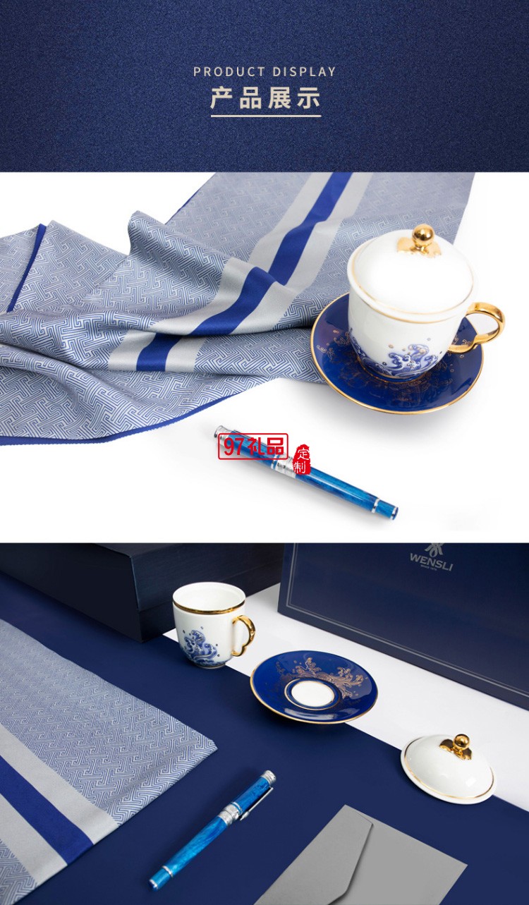 真絲長巾男高檔商務(wù)禮盒送禮 杭州絲綢長巾圍巾男瓷器元首筆套裝 君臨 灰