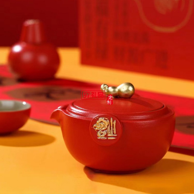 福祿創(chuàng)意黑陶茶具套裝隨手禮便攜茶葉罐高檔商務(wù)生日禮物春節(jié)賀歲