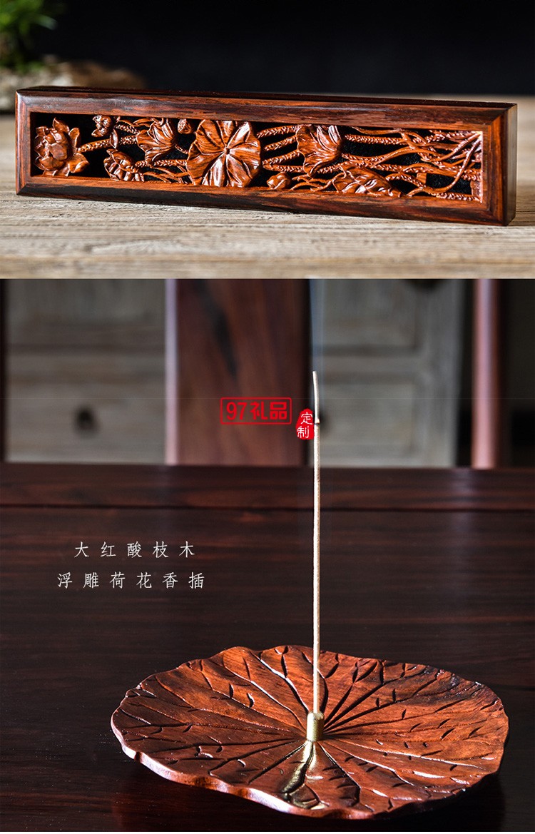 非洲酸枝木精雕鏤空浮雕荷韻香盒