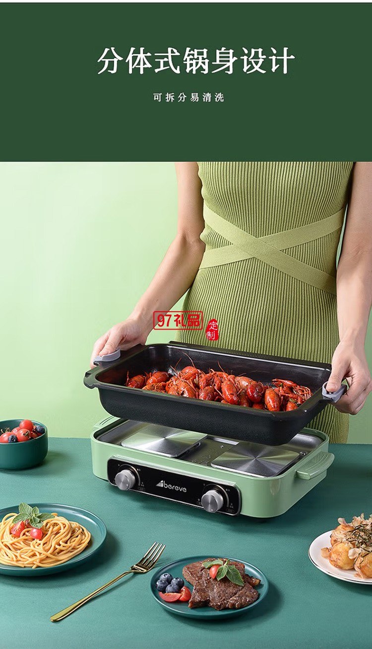 多功能料理鍋LLG-01多用涮火鍋燒烤一體鍋定制公司廣告禮品