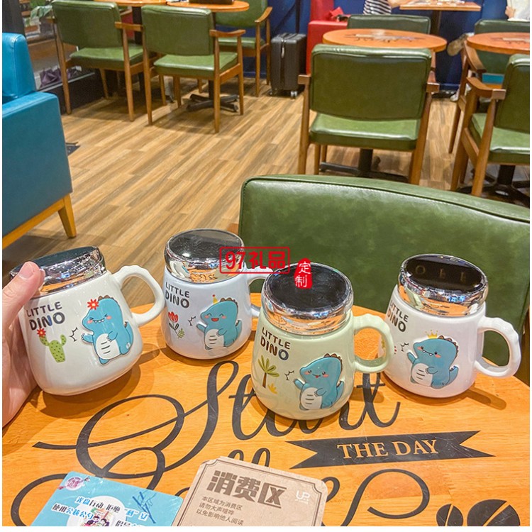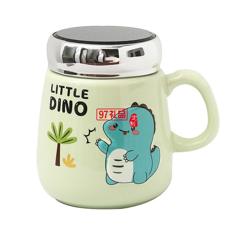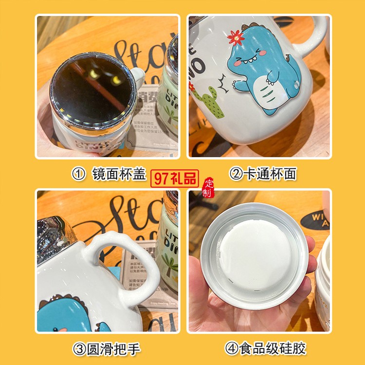 可愛卡通恐龍動(dòng)物陶瓷杯子密封蓋鏡面?zhèn)€性兒童馬克杯