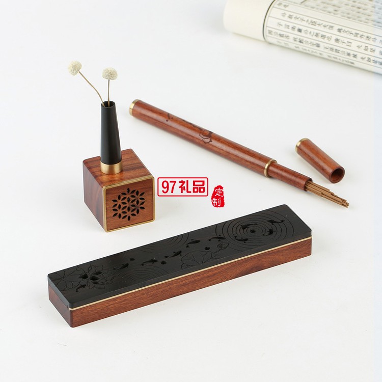 紅木質(zhì)線香臥香爐 小型銅木音響