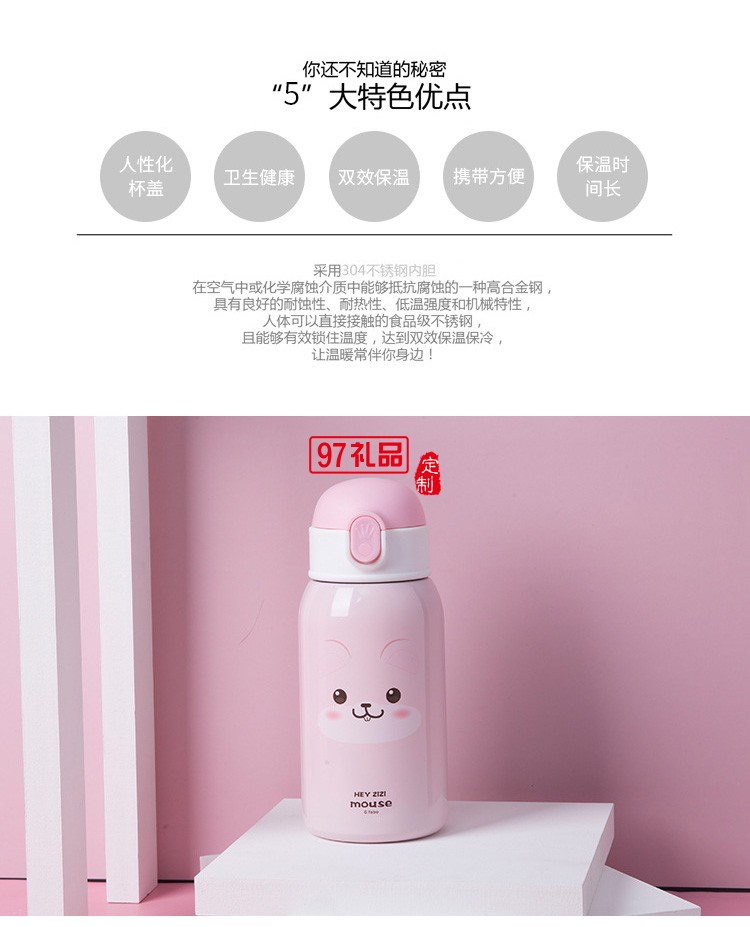 家佳百味定制 卡通保溫杯不銹鋼彈跳蓋吸管水杯