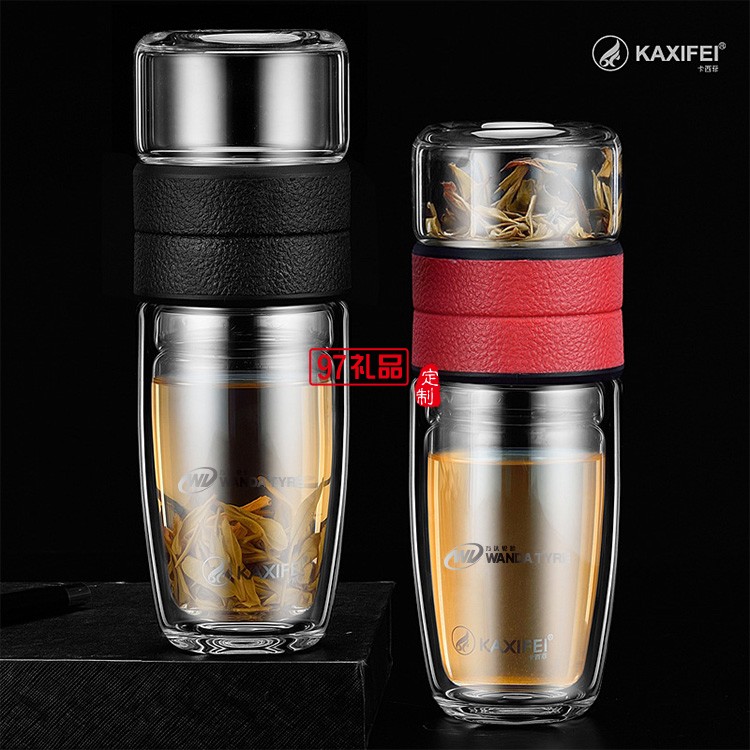 萬(wàn)達(dá)輪胎定制 卡西菲車(chē)載便攜式茶水分離 雙層玻璃杯 可定制LOGO