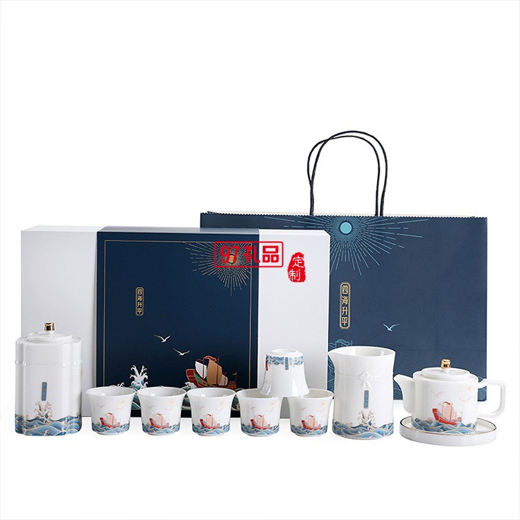 四海升平茶具套裝可印ogo商務(wù)禮盒開業(yè)伴手禮定制
