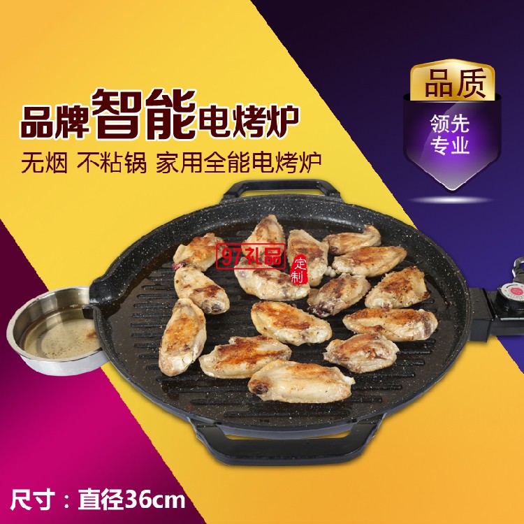 無(wú)煙電烤盤麥飯石不粘電烤爐燒烤爐圓形烤肉機(jī)定制公司廣告禮品